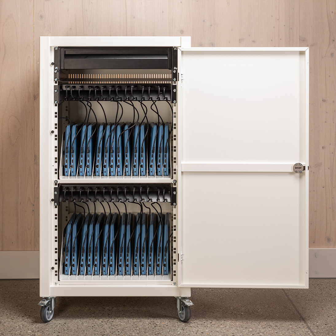 Dank kompaktem, leichtem und modernem Design ist der Furneem Charging Cart ein Blickfang in jeder Umgebung. Die Standardfarbe ist reinweiss. Auf Wunsch können jegliche RAL-Farben gewählt werden.